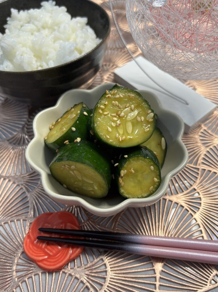 - きゅうりは薄めに切ると味がよく染み込みます。